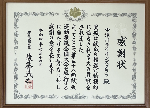 1989年には、日本赤十字社が創設した第1回献血推 進賞を受賞しました。